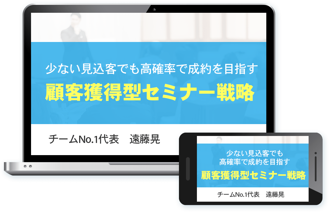 「顧客獲得型セミナー」とは、大人数を集めて情報やノウハウを提供する一般的な情報提供型のセミナーとは違って、少人数で開催でき、高額商品を高確率で契約することを目的にしたセミナーのことです。